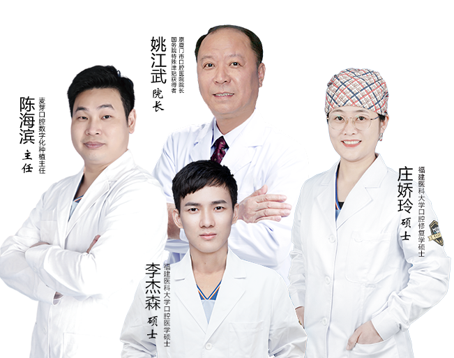 麦芽数字化精确种植牙,博硕专家团保驾护航更安心。姚江武教授领衔福建医科大学口腔医学硕士李杰森、口腔种植中心陈海滨主任,福建医科大学口腔修复学硕士庄娇玲为大家量身定制牙齿治疗方案。他们拥有国际前沿的口腔理论和丰富的临床经验,是数字化精确诊疗核心技术掌握者,精于齿艺,集科、教、研为一体,致力于不断推进口腔种植诊疗技术革新,提供更高品质的口腔诊疗服务。